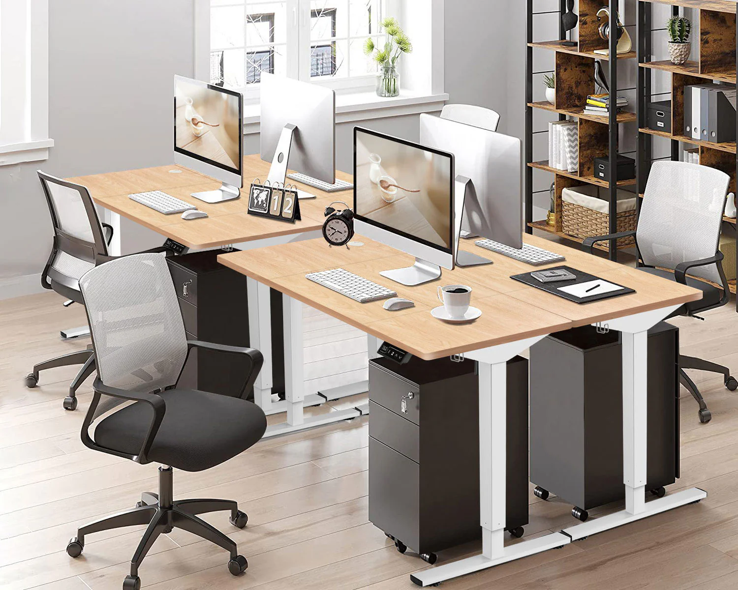 Höhenverstellbarer Tisch erfüllt die meisten Anforderungen für Büro und Studium. Zwar ist die Tischplatte aus mehreren Platten gefertigt, aber sie ist in vielen verschiedenen Größen erhältlich – von 100×60 cm und 120×60 cm bis hin zu 200×80 cm.